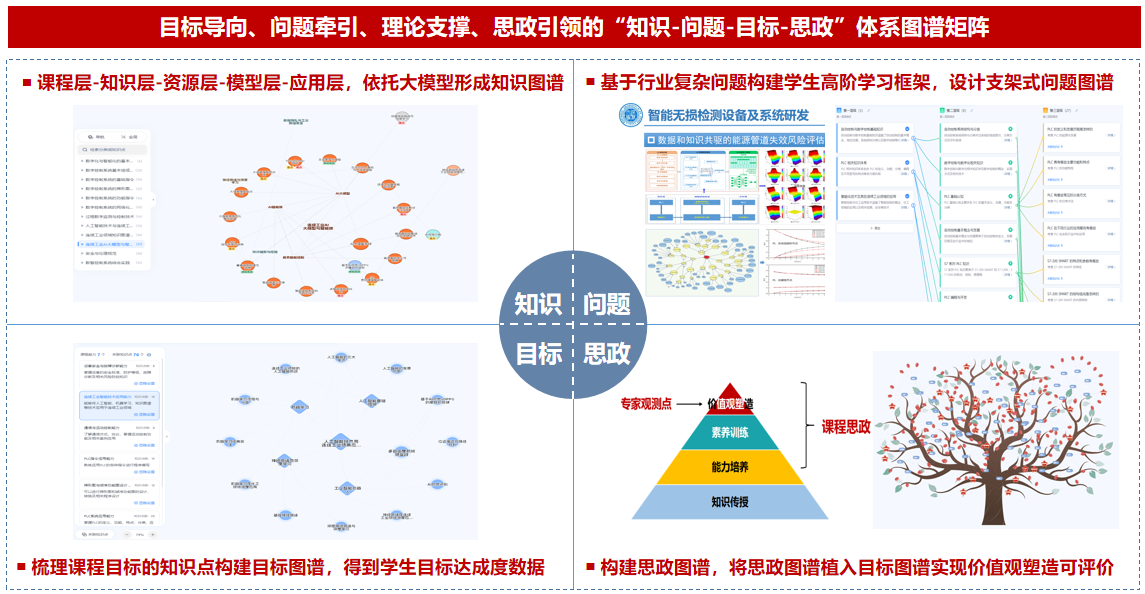案例以“智能驱动与价值引领”双核驱动,运用生成式人工智能技术,构建了课程专用大模型与智能体,搭建了“知识 - 问题 - 目标 - 思政”图谱矩阵和数字人分身,设计了“生 - 师 - 智”协同教学模式,建立了数据驱动的量化评价与反馈机制,推动了AI技术与课程建设及思政育人的深度融合。