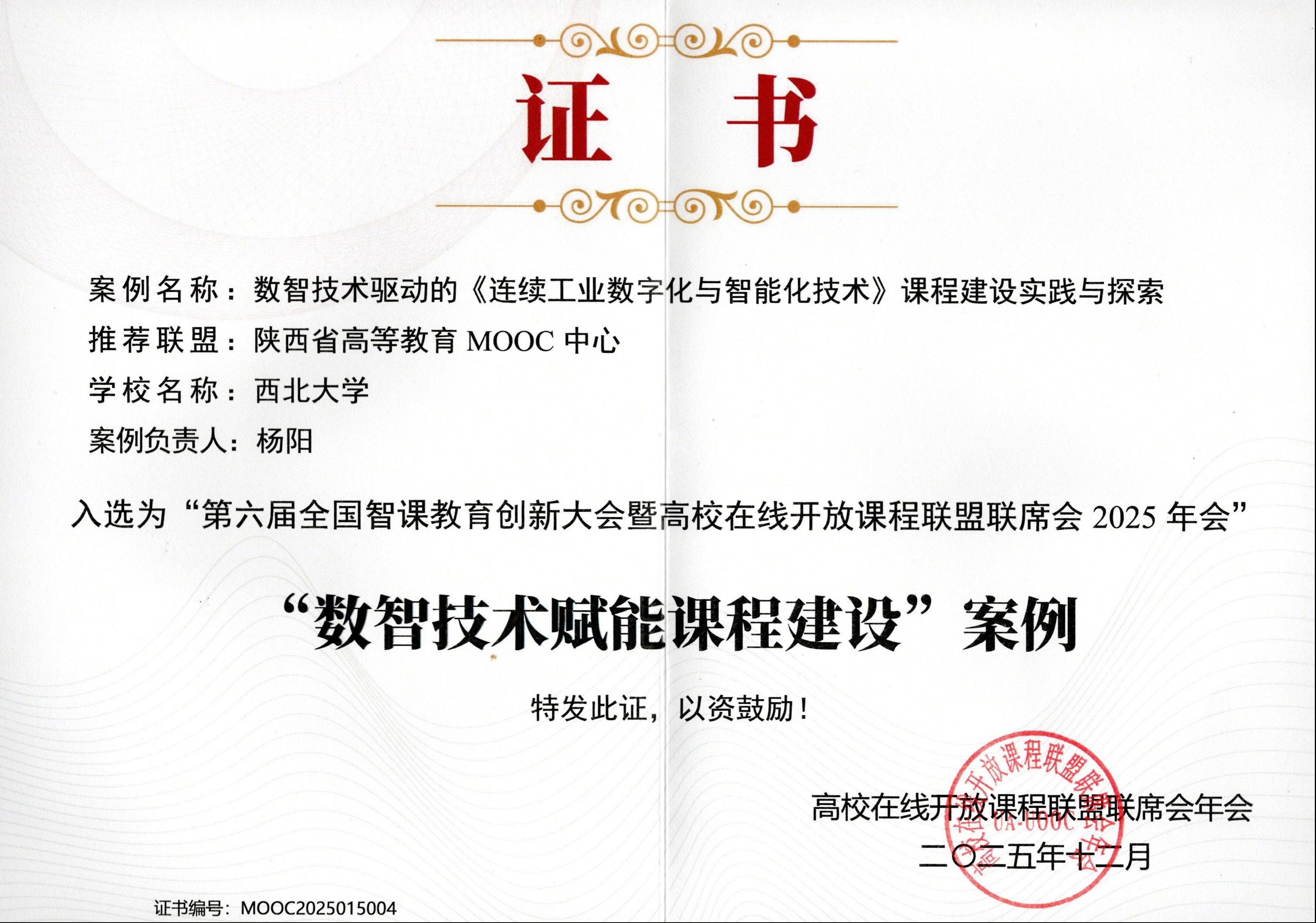 经陕西省高等教育MOOC中心择优推荐及联盟联席会遴选,我校化工学院杨阳老师团队申报的“数智技术驱动的《连续工业数字化与智能化技术》课程建设实践与探索”入选“数智技术赋能课程建设”案例。